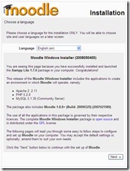 This section describes the steps needed for installing Moodle using the Complete install packages for Windows. This package allows Moodle to be installed, along with the prerequisites that include a web server (Apache), database (MySQL) and scripting language (PHP).